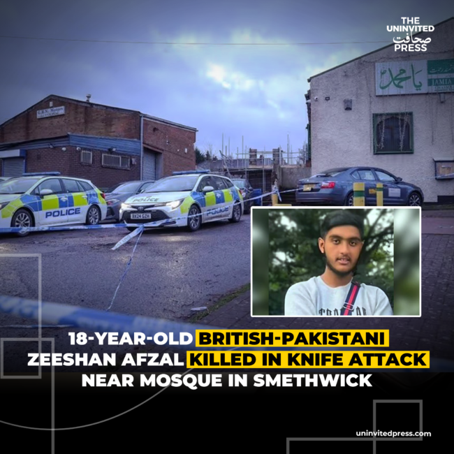 February 24, 2026 18-Year-Old British-Pakistani Teen Zeshan Afzal Fatally Stabbed Outside Mosque in Smethwick-Murder Investigation Underway