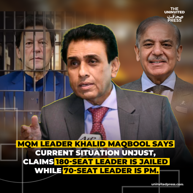 February 23, 2026 MQM Leader Khalid Maqbool Siddiqui Blasts Pakistan’s Political ‘Injustice’: 180-Seat Mandate Behind Bars While 70-Seat Rival Rules as PM