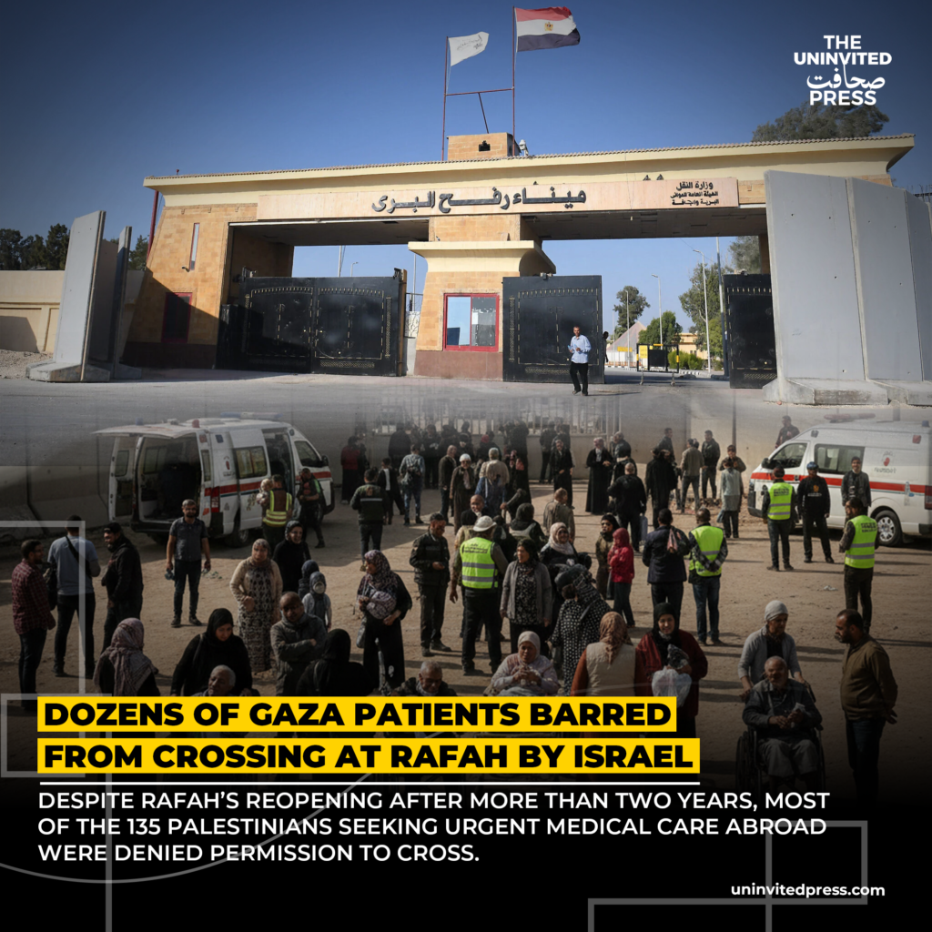 Gaza’s Lifeline Reopens, But Israel Bars Dozens of Desperate Patients at Rafah Crossing Share This: Israel bars dozens of Gaza