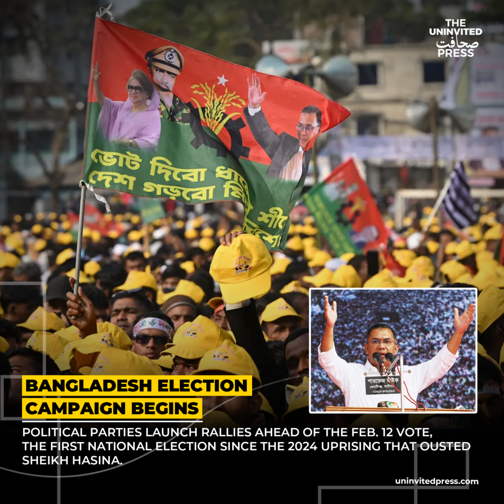 Bangladesh’s election campaign launches with rallies in Dhaka amid violence fears, marking the first vote since Sheikh Hasina’s 2024 ouster and testing democracy’s revival.