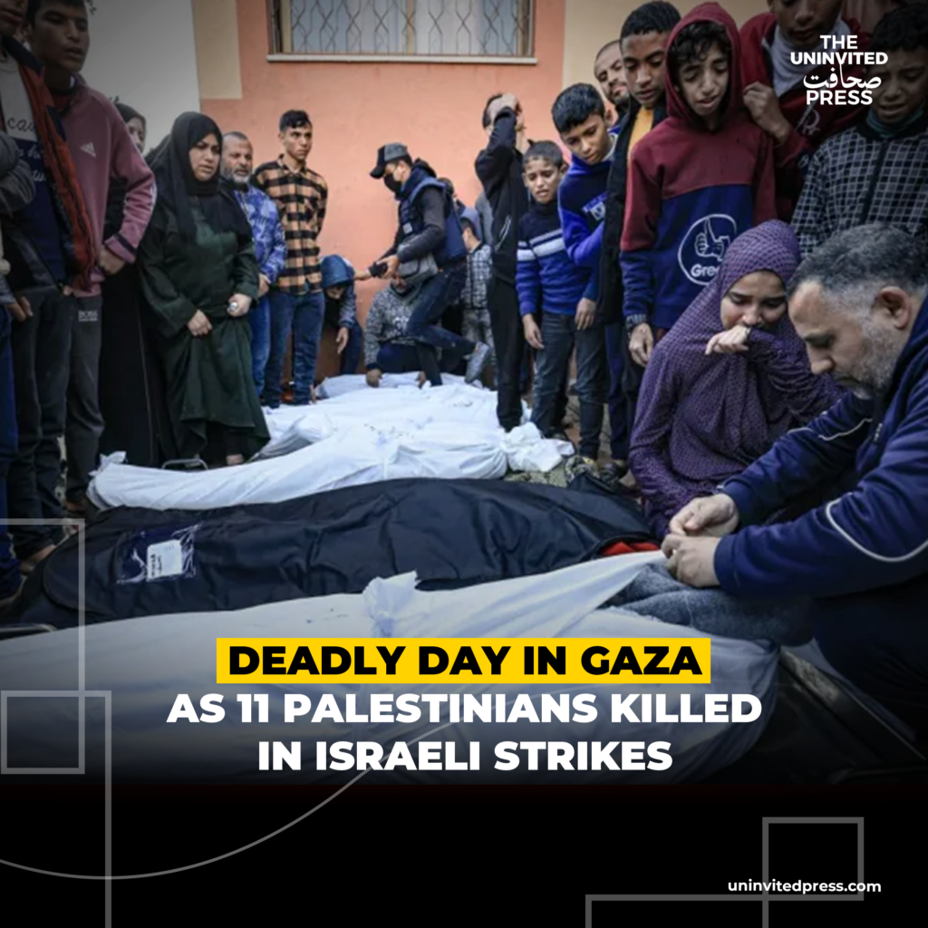 At least 11 Palestinians were killed and several others wounded in a wave of Israeli air and drone strikes across the Gaza Strip on Sunday, in one of the most lethal days of violence in recent weeks. The attacks struck residential areas and a displaced persons camp, deepening fears of renewed escalation after a fragile truce.