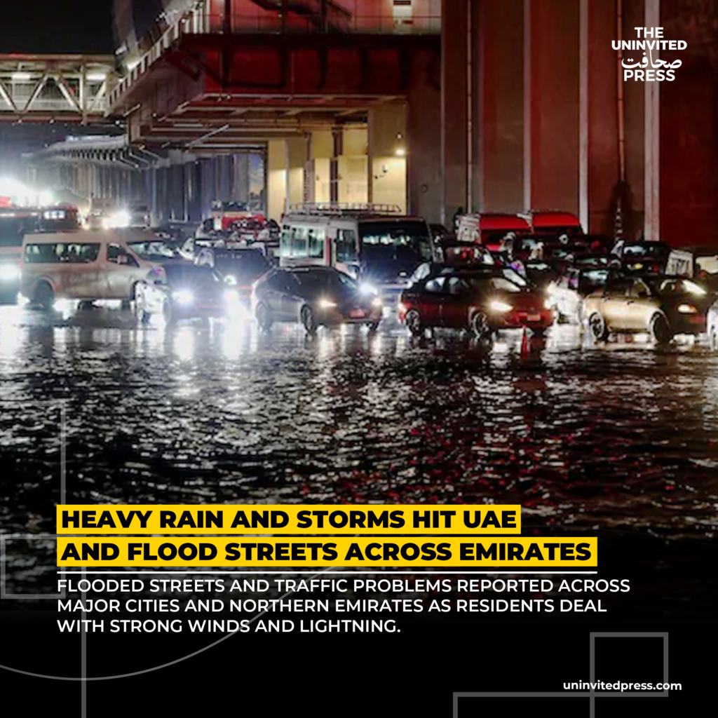 Heavy rainfall and powerful thunderstorms swept across the United Arab Emirates on Thursday night and into Friday, triggering flash floods, waterlogged roads and major traffic disruptions in several emirates, including Dubai, Abu Dhabi and Sharjah.