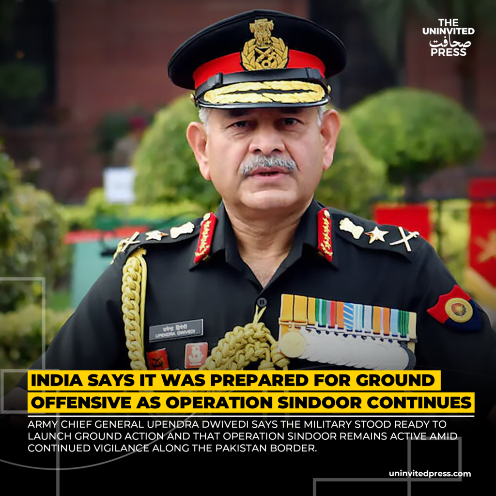 Indian Army Chief General Upendra Dwivedi reveals forces were ready for ground offensive in Operation Sindoor, which remains active against Pakistan-based terrorism amid border tensions in Jammu and Kashmir.