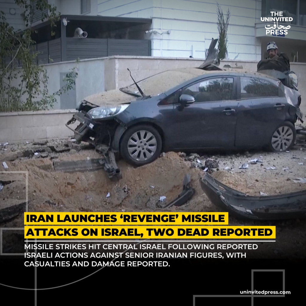 The attack is Tehran’s declared response to the assassination of senior Iranian security official Ali Larijani and Israel’s earlier strike on the South Pars gas field. Explosions rocked the area near a train station and apartment blocks, with some missiles reported to carry cluster munitions. This is the first time Iranian missiles have caused confirmed fatalities on Israeli soil in the current conflict.