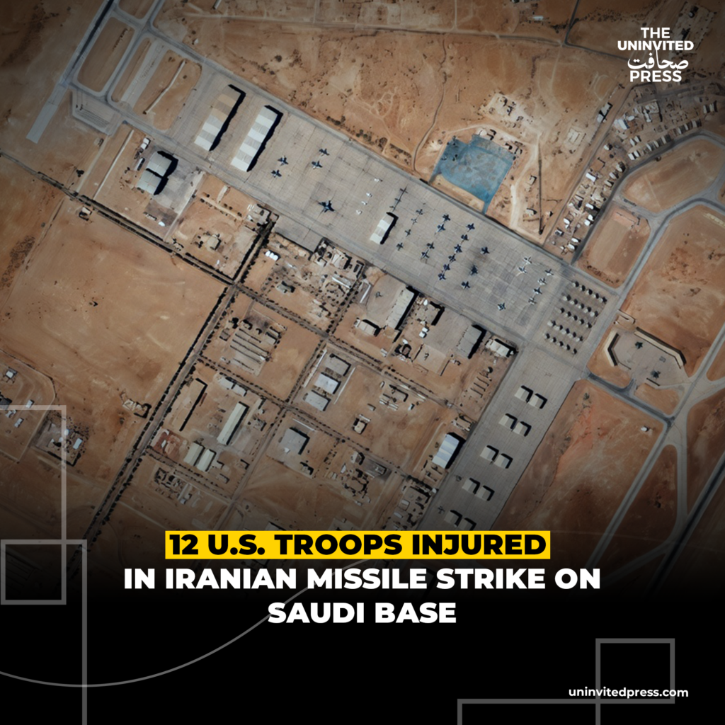 Prince Sultan Air Base, Saudi Arabia-At least 12 US service members were injured, two of them seriously, after Iran launched a combined missile and drone attack on Prince Sultan Air Base in Saudi Arabia on Friday, US officials and media reports said.