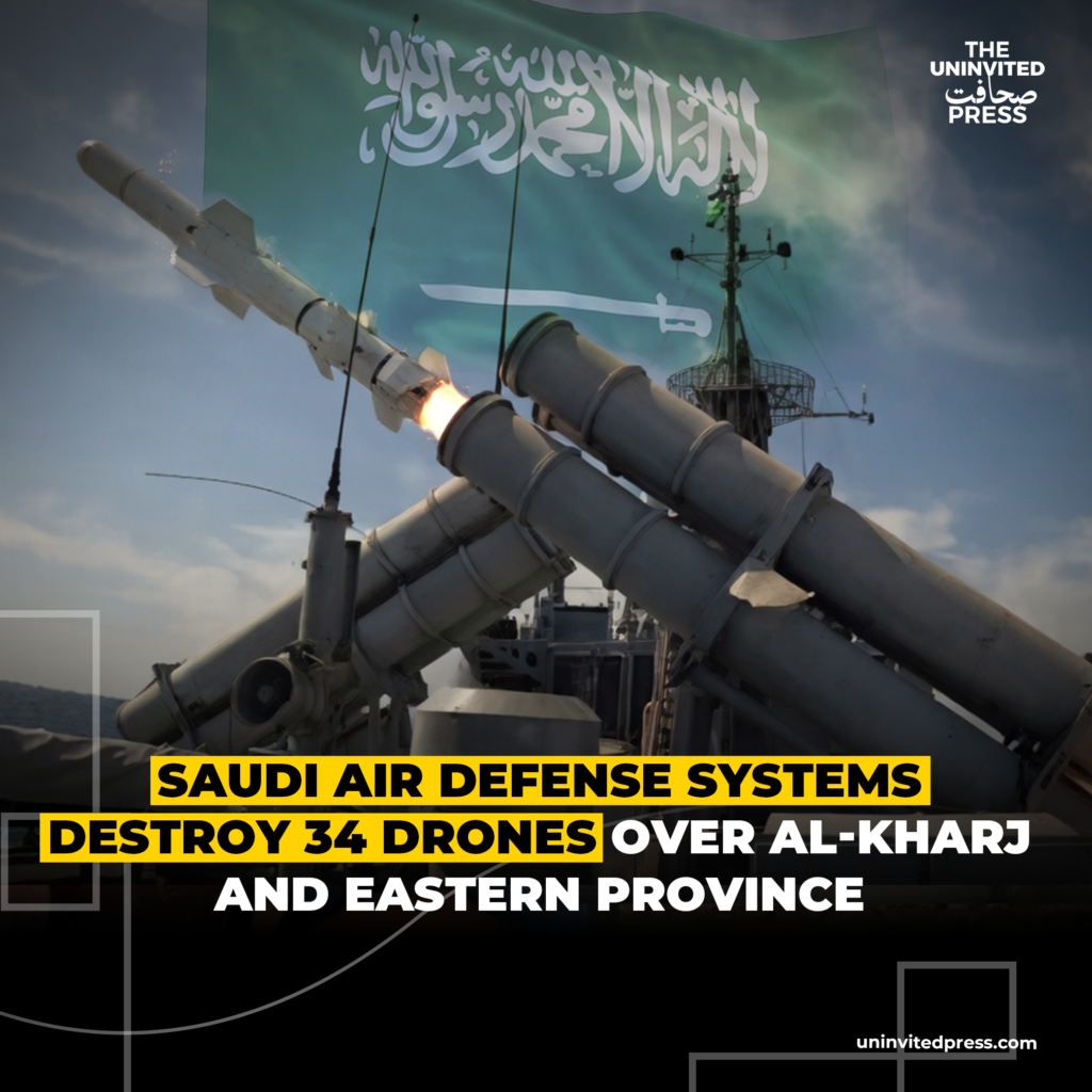 Saudi Arabia’s air defense systems destroy 34 drones over Al-Kharj and the Eastern Province, highlighting heightened regional tensions and ongoing security challenges.