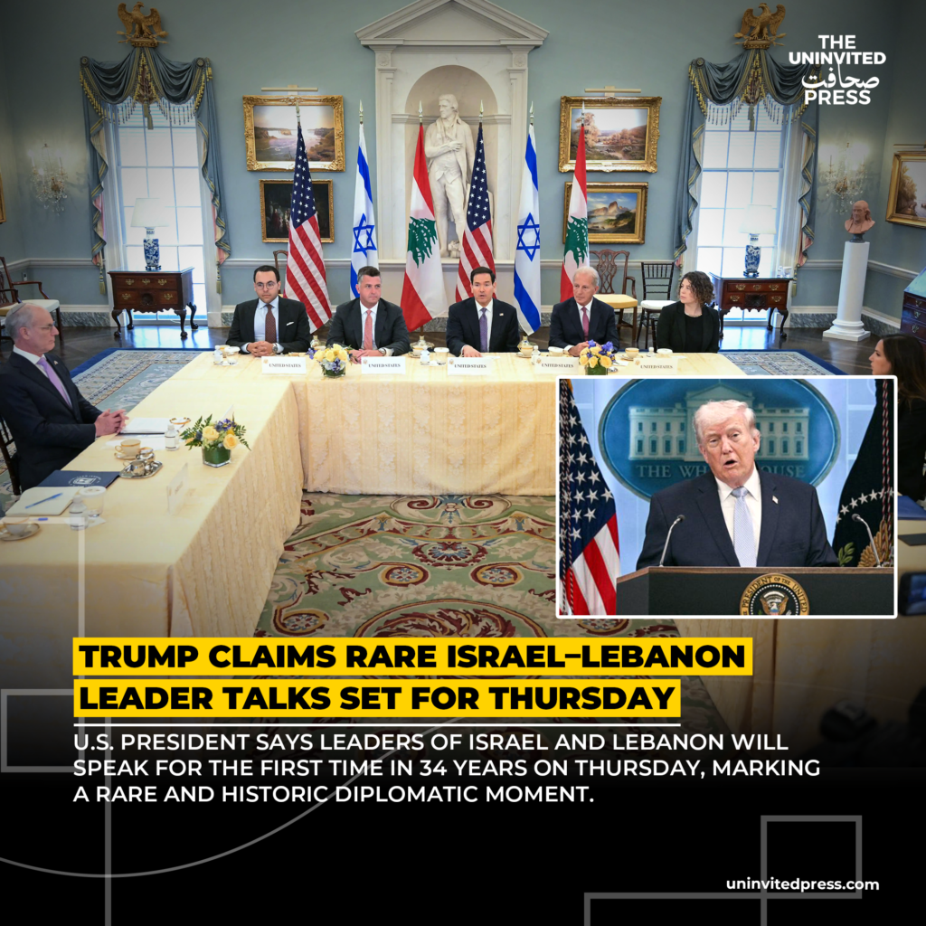 US President Donald Trump has announced that the leaders of Israel and Lebanon will speak directly on Thursday, describing the planned conversation as a rare diplomatic opening after more than three decades without high-level contact between the two nations.