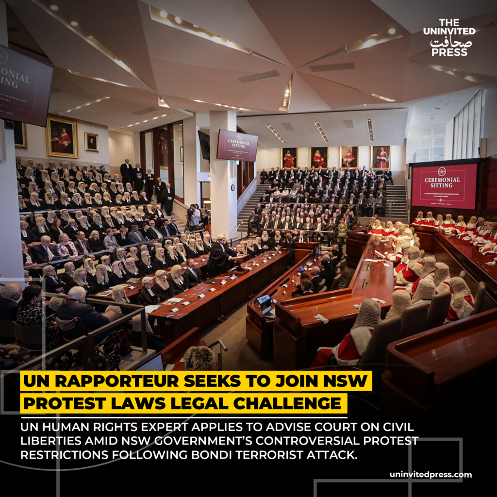 UN rapporteur Ben Saul seeks to intervene in NSW protest laws challenge, advising on human rights after Bondi attack. Groups claim constitutional breach; hearing set for February.
